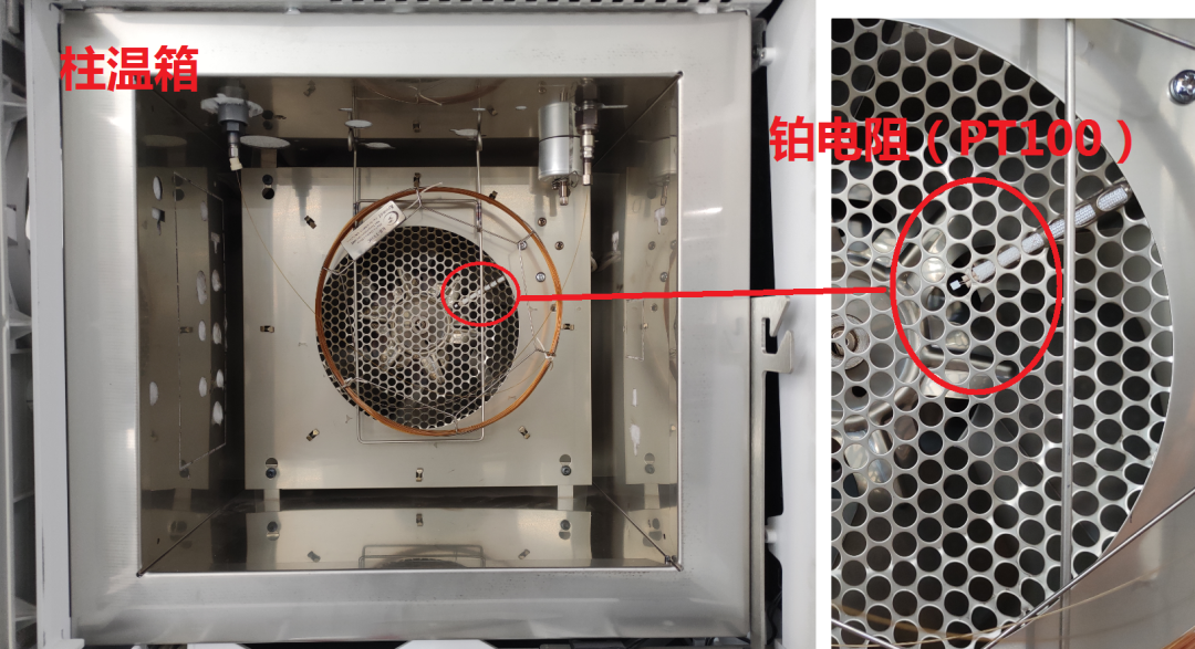 氣相色譜柱溫箱一般使用加熱絲+鉑電阻,升溫時利用220V交流電在加熱絲上產生熱量,通過鉑電阻(PT100)對溫度進行測量和反饋,使進樣口、檢測器等部位達到設定溫度。